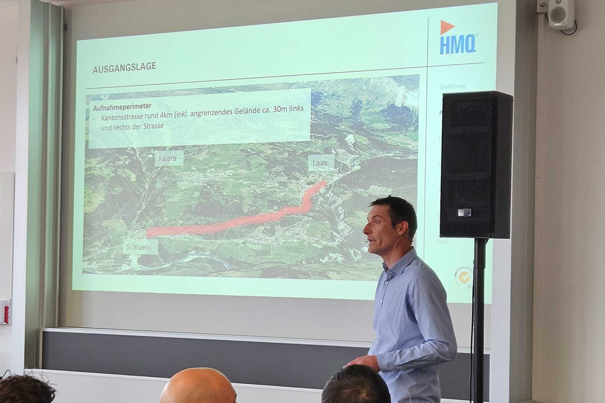 An der SWISS DIMENSIONS 2025 in Sursee referierte Stefan Collet, Geschäftsführer der HMQ AG, über die praxisorientierte Kombination verschiedener mobiler Messsysteme bei der Bestandeserfassung. Am Beispiel der Strassenkorrektion H19 zwischen Laax, Seehof und Schluein zeigte er, wie sich unterschiedliche Erfassungsmethoden effizient miteinander verbinden lassen, um präzise und wirtschaftliche Ergebnisse zu erzielen.